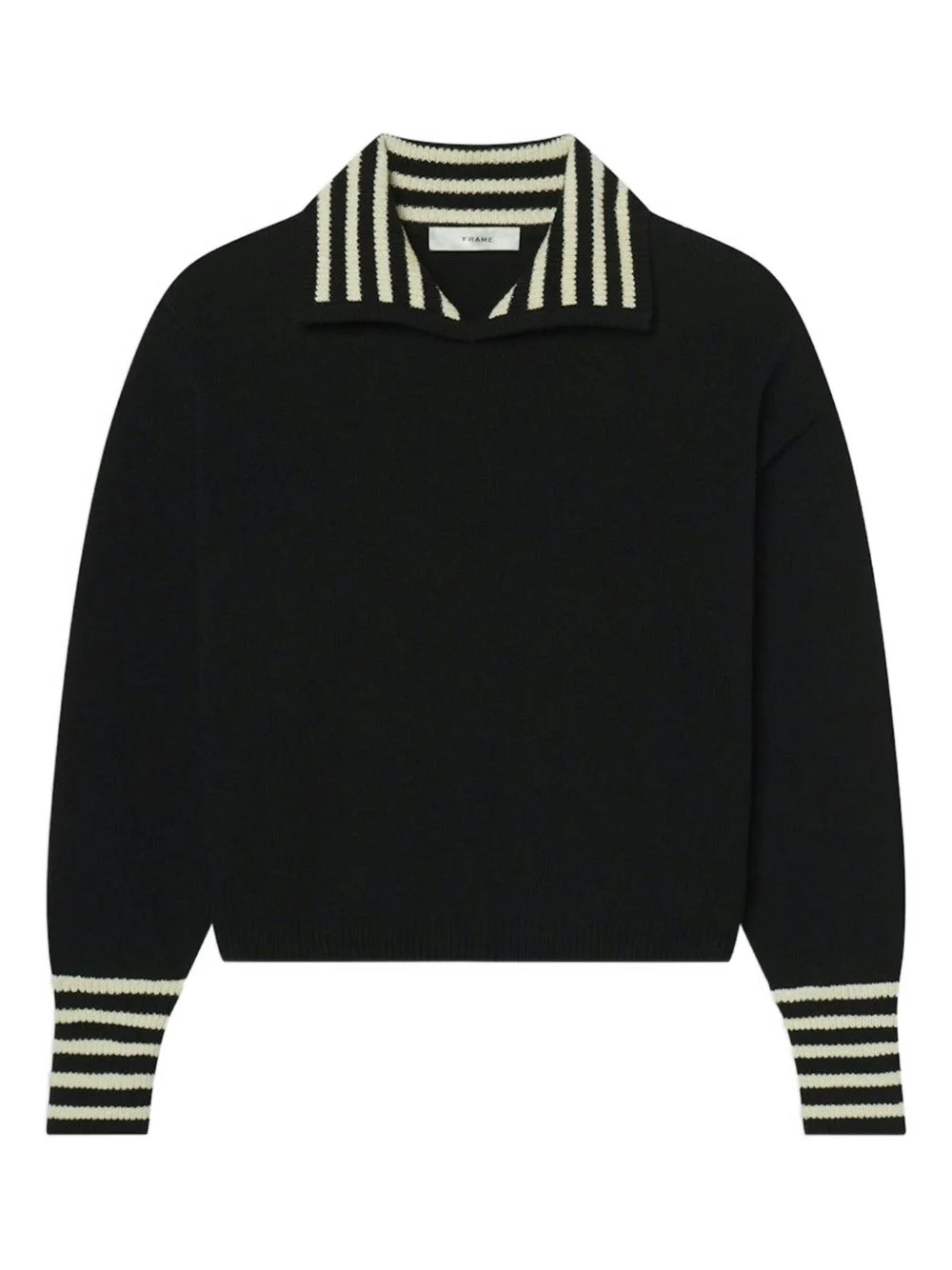 Sailor striped sweater Highlights - Black - Striped collar - Striped cuffs - Point collar - Long sleeves Imported Composition Cotton 75%, Nylon 25% Washing instructions Read Manufacturer Guidelines