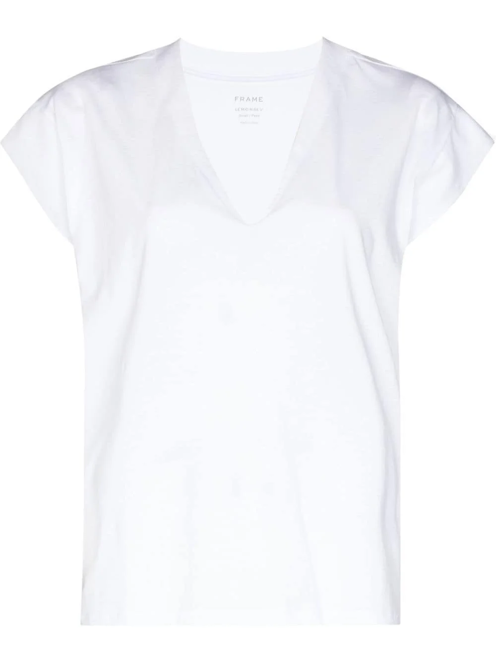 short-sleeved V-neck T-shirt FRAME approaches classic laid-back design with a sustainable mindset, as illustrated by this black T-shirt. A timeless silhouette, the V-neck tee is crafted from eco-friendly organic cotton. Highlights - Black - Organic cotton - V-neck - Short sleeves - Straight hem Imported Composition Organic Cotton 100% SIZE & FIT Model measurements Height 5 ft 11 in(1.8 m) Bust/Chest 31.49 in(80 cm) Hips 37 in(94 cm) Waist 25.98 in(66 cm) FittingInformation This piece fits true to size. We recommend you get your regular size Cut for a relaxed fit Made with a mid-weight fabric Washing instructions Machine Wash