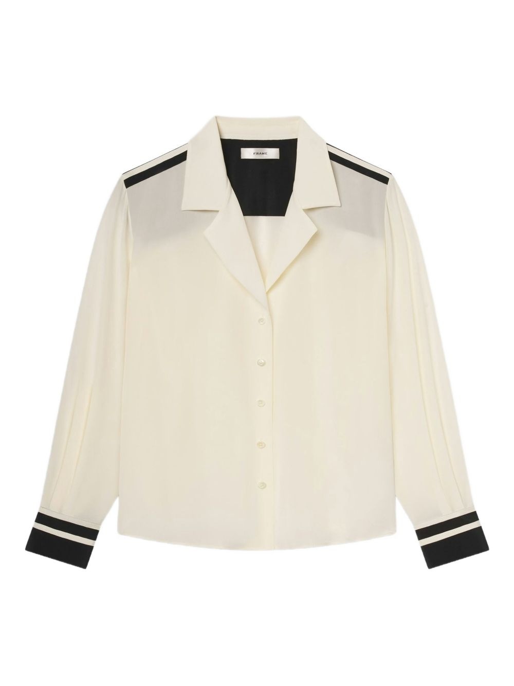 silk pajama shirt Highlights - White - Black yoke - Black stripe detail - Long sleeves - Button fastening - Camp collar Imported Composition Silk 100% SIZE & FIT Measurement SLEEVE LENGTH 26 in(66 cm) Washing instructions Read Manufacturer Guidelines