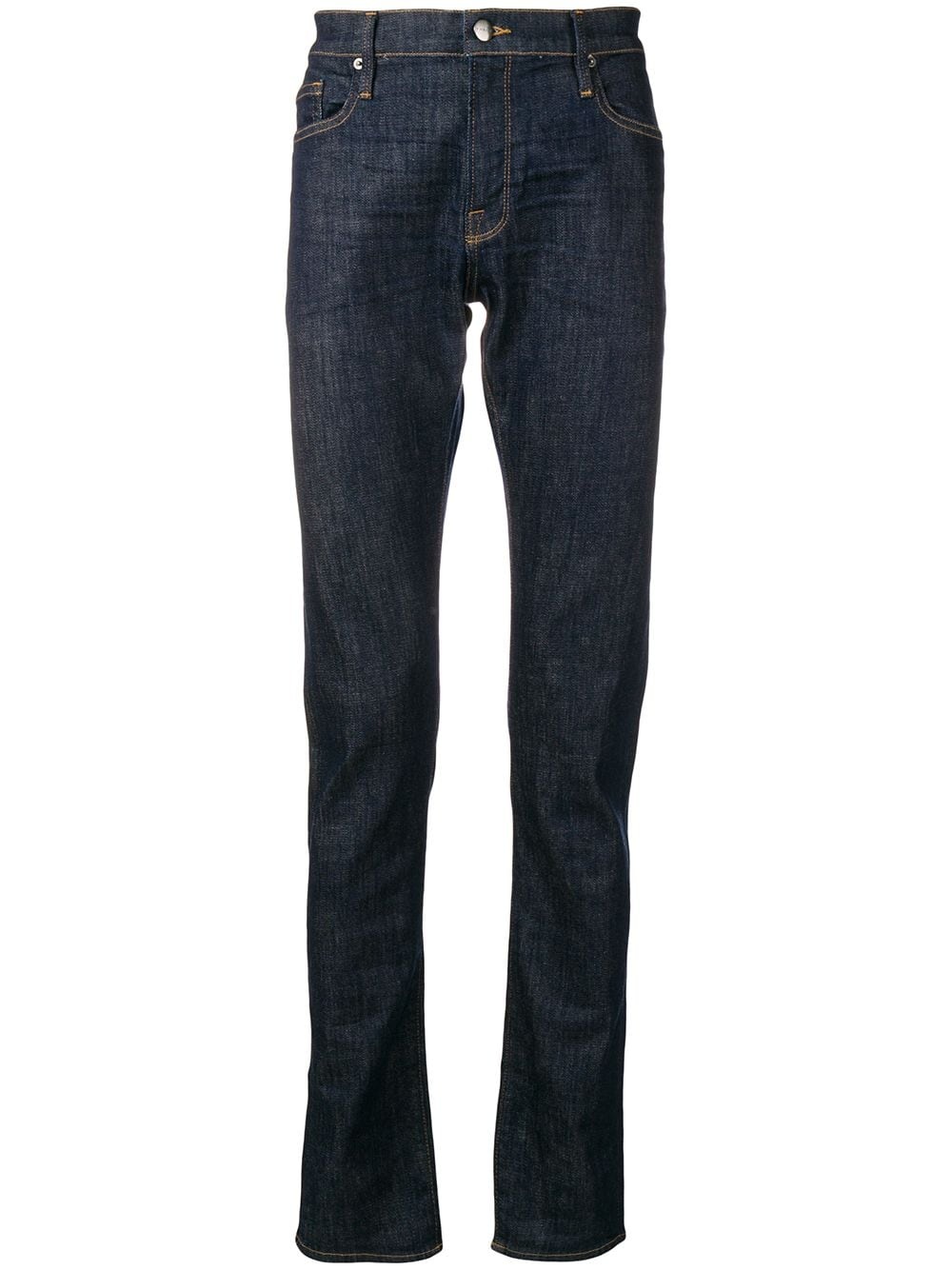 slim jeans Dark blue cotton blend slim jeans from FRAME featuring a mid rise, a button & zip fastening and a five pocket design. Made in United States Composition Cotton 94%, Polyester 5%, Spandex/Elastane 1% SIZE & FIT Model measurements Height 6 ft 1 in(1.86 m) Bust/Chest 37.4 in(95 cm) Hips 37 in(94 cm) Waist 30.7 in(78 cm) Measurement FRONT RISE 10 in(25.4 cm) INSIDE LEG 32.51 in(82.6 cm) BACK RISE 11.49 in(29.2 cm) HIPS 37.99 in(96.5 cm) Hem Width 14.01 in(35.6 cm) WAIST 34.01 in(86.4 cm) Washing instructions Machine Wash