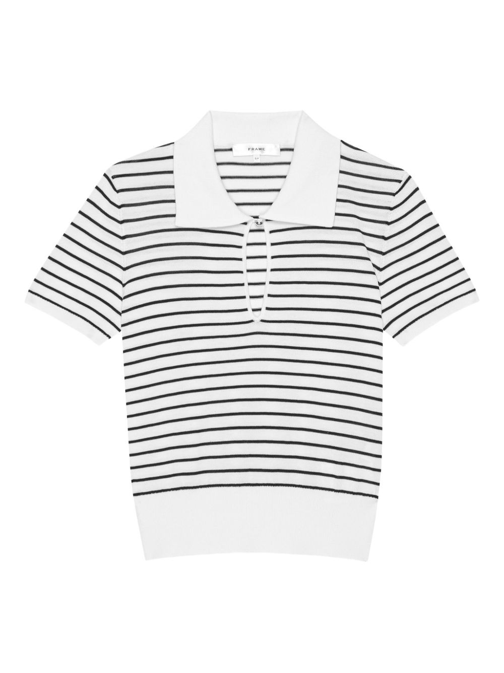 striped keyhole polo top Highlights - Off-white - Horizontal stripes - Keyhole neckline - Short sleeves - Ribbed hem Imported Composition Modal 50%, Cotton 50% Washing instructions Dry Clean Only