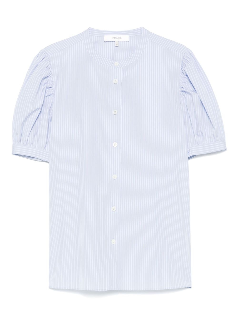 striped shirt Highlights - Light blue - Front button fastening - Band collar - Short puff sleeves - Buttoned-cuff sleeves Imported Composition Cotton 100%