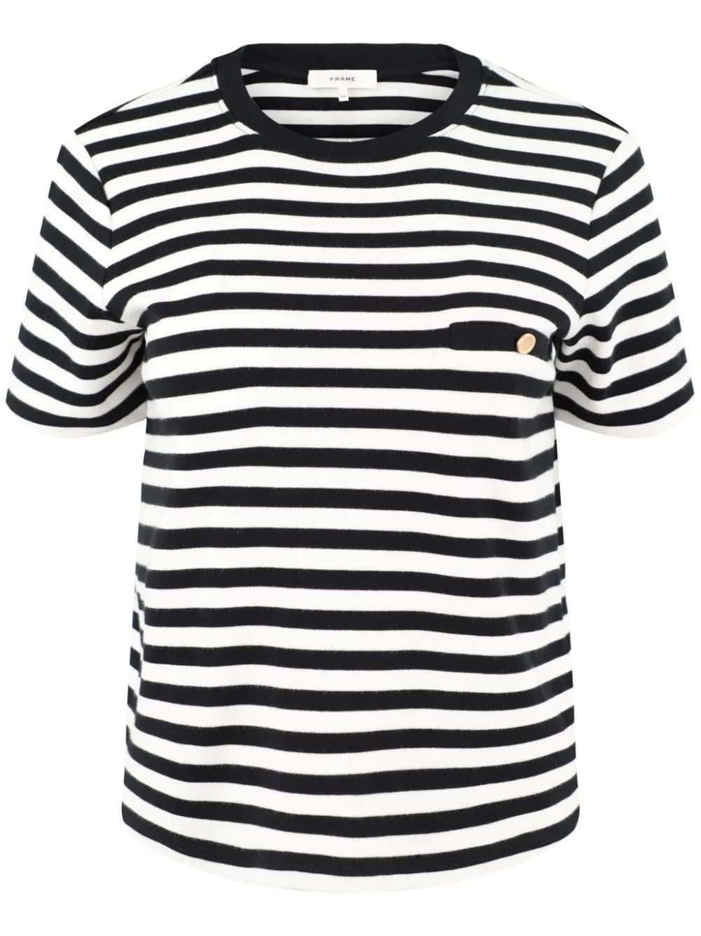 striped T-shirt Highlights - Black/white - Cotton - Lightweight jersey - Horizontal stripe print - Round neck - Chest welt pocket - Gold-tone buttons - Short sleeves - Straight hem Imported Composition Cotton 100% Washing instructions Hand Wash