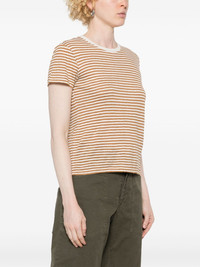 striped T-shirt Highlights - Ochre brown - Crew neck - Short sleeves Imported Composition Organic Linen 100% SIZE & FIT Model measurements Height 5 ft 9 in(1.75 m) Bust/Chest 34.64 in(88 cm) Hips 36.61 in(93 cm) Waist 26.37 in(67 cm) FittingInformation Designed for a slim fit that sits just away from the body offering a close yet comfortable fit Made from a lightweight non-stretch fabric, this piece offers minimal elasticity when worn