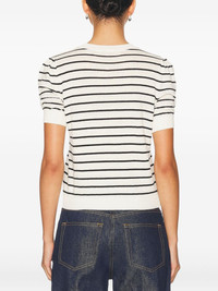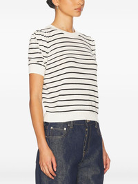 striped T-shirt Highlights - Light beige - Crew neck - Short puff sleeves - Ribbed trim Imported Composition Cotton 35%, Lyocell 35%, Linen/Flax 30%
