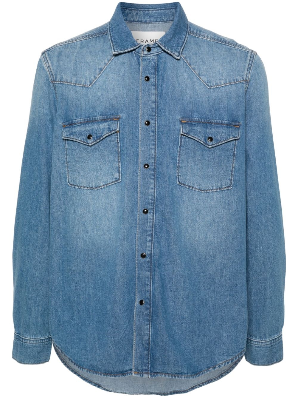 Western denim shirt Highlights - Indigo blue - Cotton blend - Denim - Western-style panelling - Spread collar - Two chest patch pockets - Long sleeves - Press-stud fastening cuffs - Curved hem - Front press-stud fastening Imported Composition Cotton 80%, Recycled Cotton 20% SIZE & FIT Model measurements Height 6 ft 2 in(1.87 m) Bust/Chest 36.41 in(92.5 cm) Hips 35.43 in(90 cm) Waist 29.52 in(75 cm) FittingInformation Designed for a regular fit, allowing for a comfortably loose fit throughout the body Sturdy and hard-wearing, this denim piece offers no stretch This piece fits true to size – take your usual size