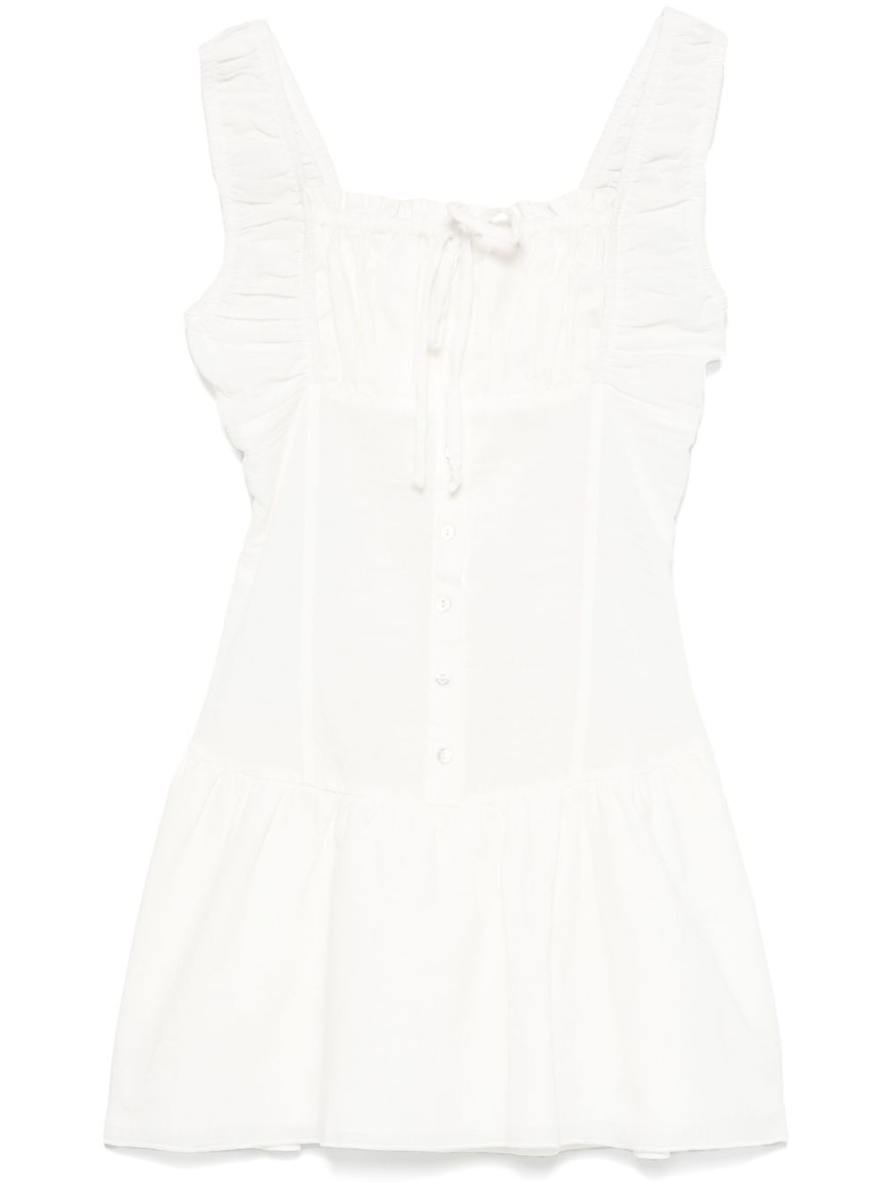 Christa mini dress Highlights - White - Front button fastening - Square neck - Sleeveless - Full lining Imported Composition Cotton 100% SIZE & FIT Model measurements Height 5 ft 9 in(1.75 m) Bust/Chest 34.64 in(88 cm) Hips 36.61 in(93 cm) Waist 26.37 in(67 cm) Measurement LENGTH 24.4 in(62 cm) WAIST 25.98 in(66 cm) BUST 27.55 in(70 cm) FittingInformation Designed for a close fit throughout The elasticated shoulders offer movement and a comfortable fit Made from a lightweight fabric