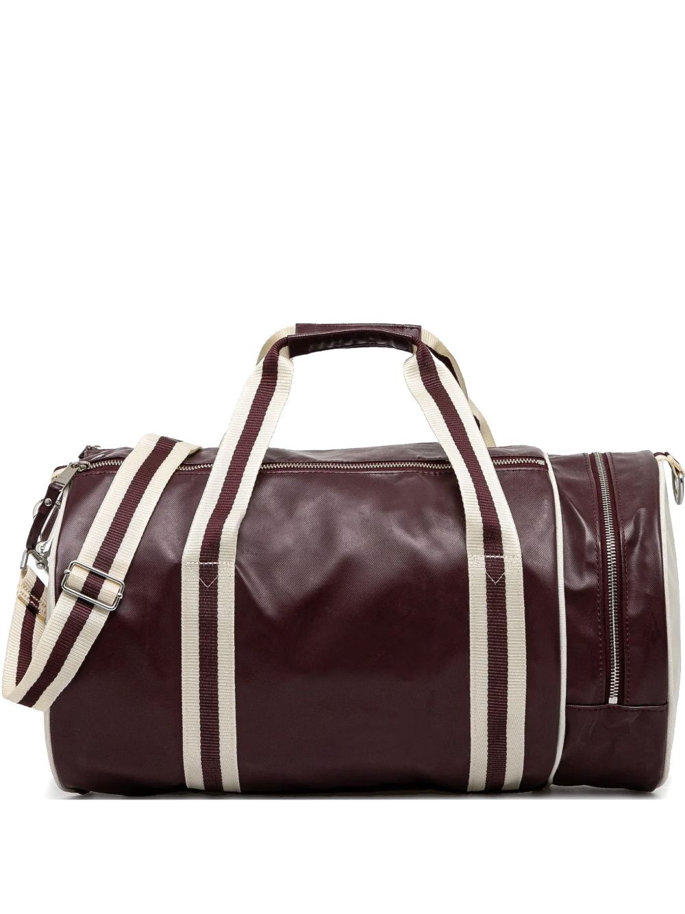 Classic logo-print holdall Highlights - Dark red - Top zip fastening - Two top handles - Adjustable detachable shoulder strap - Side zip-fastening pocket - Partitioned compartment Imported Composition Outer: Recycled Polyester 100% SIZE & FIT Measurement DEPTH 10.23 in(26 cm) HEIGHT 10.23 in(26 cm) WIDTH 18.11 in(46 cm)