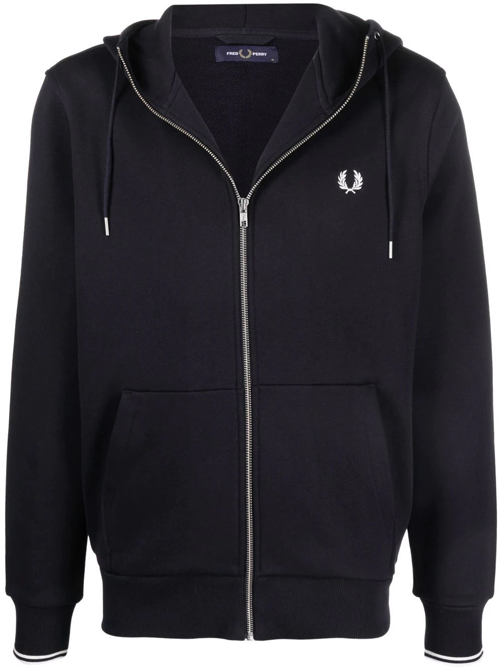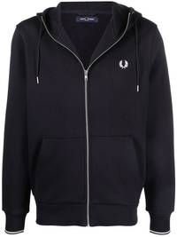 logo-embroidered hoodie Highlights - Navy - Cotton blend - Embroidered logo at the chest - Drawstring hood - Front zip fastening - Long sleeves - Two front pouch pockets - Straight hem Imported Composition Cotton 79%, Polyester 21% SIZE & FIT Model measurements Height 6 ft 2 in(1.88 m) Bust/Chest 36.61 in(93 cm) Hips 35.82 in(91 cm) Waist 27.95 in(71 cm) Measurement CHEST 39.37 in(100 cm) SLEEVE LENGTH 25.19 in(64 cm) LENGTH 25.59 in(65 cm) Shoulder Width 18.11 in(46 cm) FittingInformation This piece fits true to size. We recommend you get your regular size Cut for a relaxed fit Made with a mid-weight fabric Washing instructions Machine Wash