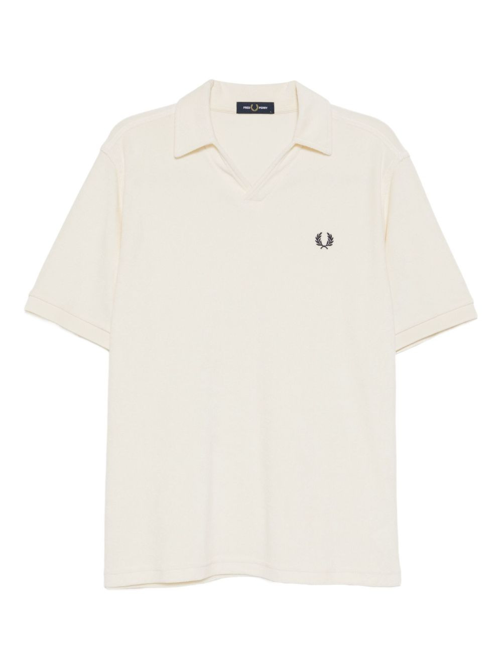 embroidered-logo polo shirt Highlights - Cream - Towelling finish - V-neck - Polo collar - Short sleeves Imported Composition Cotton 85%, Polyester 15% Washing instructions Machine Wash