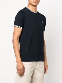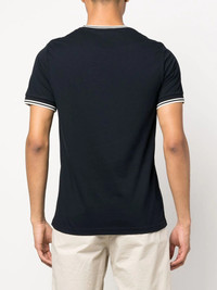 logo-embroidered T-shirt Highlights - Navy blue/cloud white - Bci cotton - Embroidered logo - Crew neck - Short sleeves - Straight hem Made in United Kingdom Composition BCI Cotton 100% SIZE & FIT Model measurements Height 6 ft 2 in(1.89 m) Bust/Chest 36.22 in(92 cm) Hips 37.79 in(96 cm) Waist 29.52 in(75 cm) FittingInformation This piece fits true to size. We recommend you get your regular size Cut for a relaxed fit Made with a mid-weight fabric Washing instructions Machine Wash