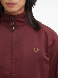 Harrington logo-embroidered jacket Highlights - Burgundy - Logo embroidered - High collar - Zip fastening - Ribbed hem Imported Composition Cotton 53%, Lyocell 47% Washing instructions Machine Wash
