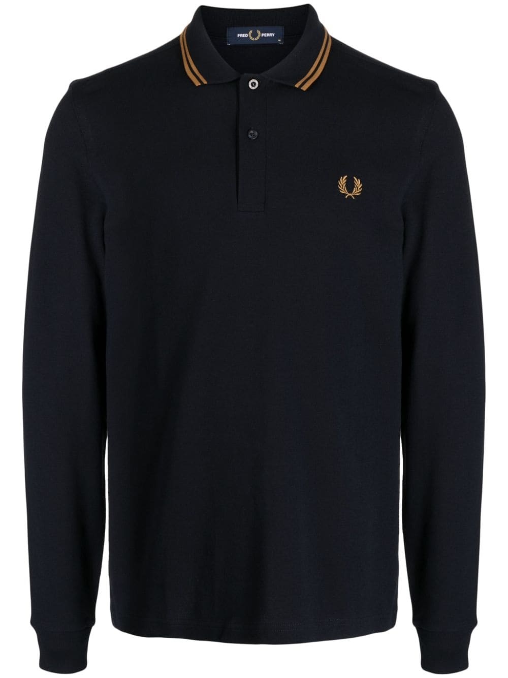 logo-embroidered cotton polo shirt Highlights - Navy blue - Cotton - Pique weave - Embroidered logo at the chest - Striped edge - Polo collar - Front button placket - Long sleeves - Straight hem Imported Composition Body: Cotton 100% SIZE & FIT Model measurements Height 6 ft 2 in(1.87 m) Bust/Chest 31.49 in(80 cm) Hips 37.79 in(96 cm) Waist 27.95 in(71 cm) Measurement CHEST 36.22 in(92 cm) LENGTH 26.37 in(67 cm) SLEEVE LENGTH 26.77 in(68 cm) Shoulder Width 16.14 in(41 cm) FittingInformation Designed for a regular fit, this polo shirt offers a comfortable loose fit throughout the body Made from a midweight non-stretch fabric, this piece offers minimal elasticity when worn This piece fits true to size – take your usual size Washing instructions Machine Wash