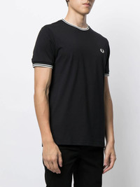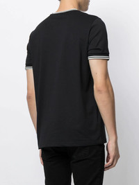 logo-embroidered cotton T-shirt black cotton embroidered logo at the chest stripe trim crew neck short sleeves straight hem Imported Composition Cotton 100% SIZE & FIT Model measurements Height 6 ft 0 in(1.83 m) Bust/Chest 37.79 in(96 cm) Hips 37 in(94 cm) Waist 30.31 in(77 cm) Measurement CHEST 37.79 in(96 cm) SLEEVE LENGTH 7.87 in(20 cm) LENGTH 27.16 in(69 cm) Shoulder Width 16.53 in(42 cm) FittingInformation This piece fits true to size. We recommend you get your regular size Cut for a loose fit Made with a mid-weight fabric Washing instructions Machine Wash