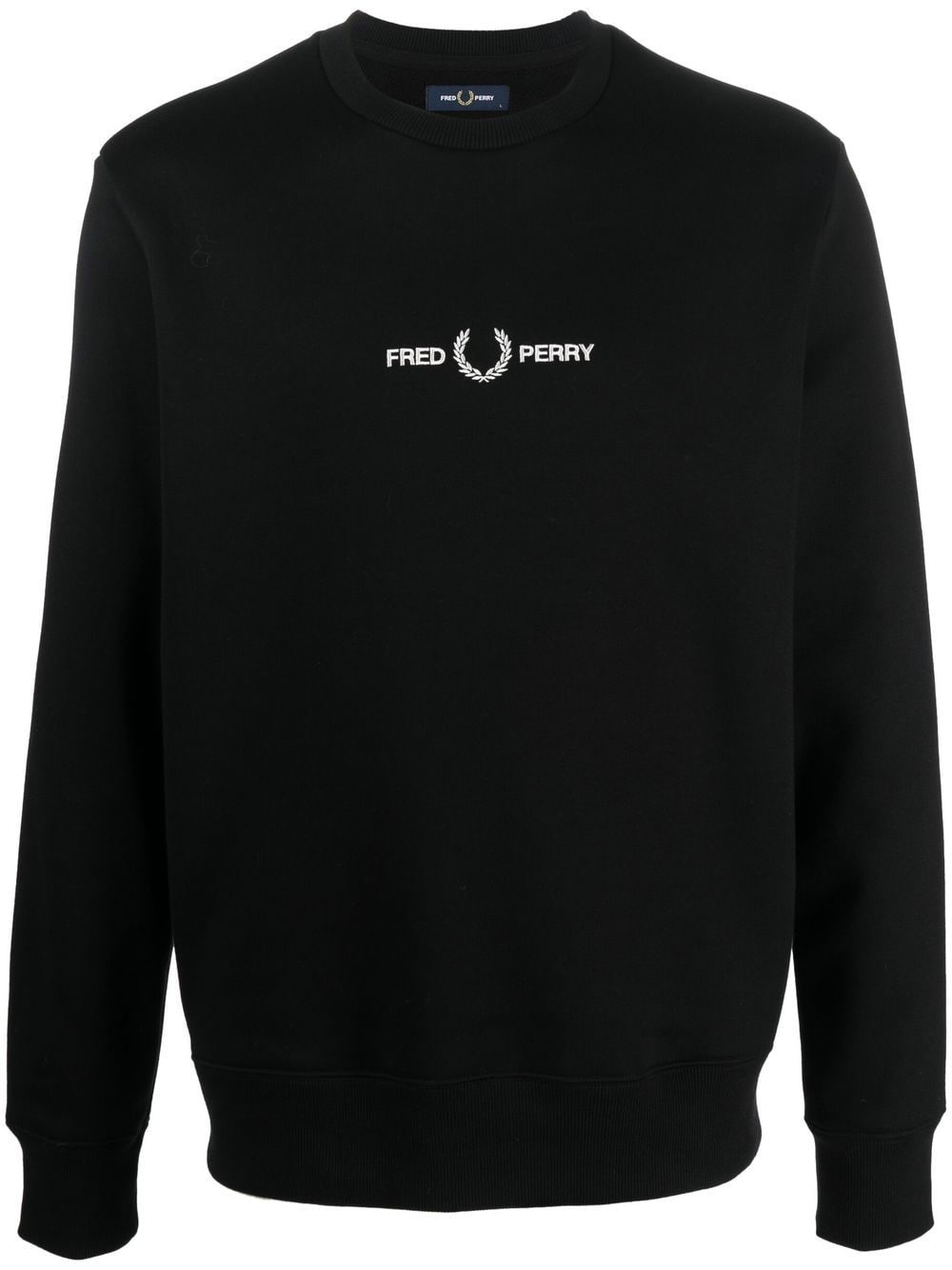 logo-embroidered crew-neck sweatshirt black/white embroidered logo to the front ribbed edge crew neck long sleeves straight hem Imported Composition Polyester 66%, Cotton 34% SIZE & FIT Model measurements Height 6 ft 2 in(1.87 m) Bust/Chest 36.41 in(92.5 cm) Hips 37 in(94 cm) Waist 29.52 in(75 cm) FittingInformation This piece fits true to size. We recommend you get your regular size Cut for a relaxed fit Made with a mid-weight fabric Washing instructions Machine Wash