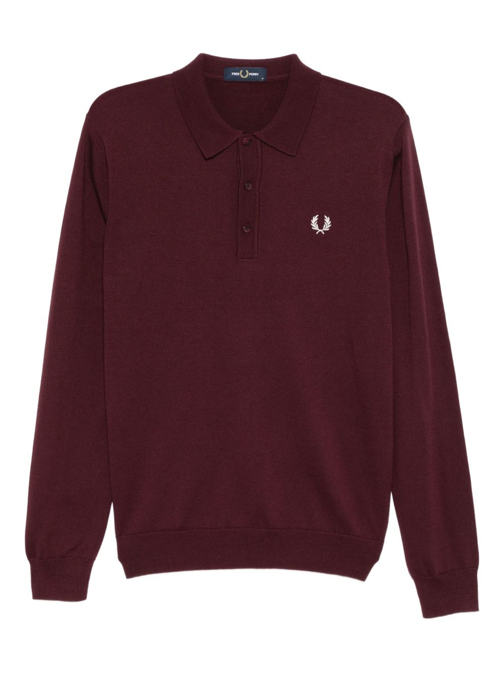 logo-embroidered polo shirt Highlights - Burgundy - Front button fastening - Long sleeves - Ribbed cuffs and hem Imported Composition Wool 54%, Cotton 46% Washing instructions Machine Wash