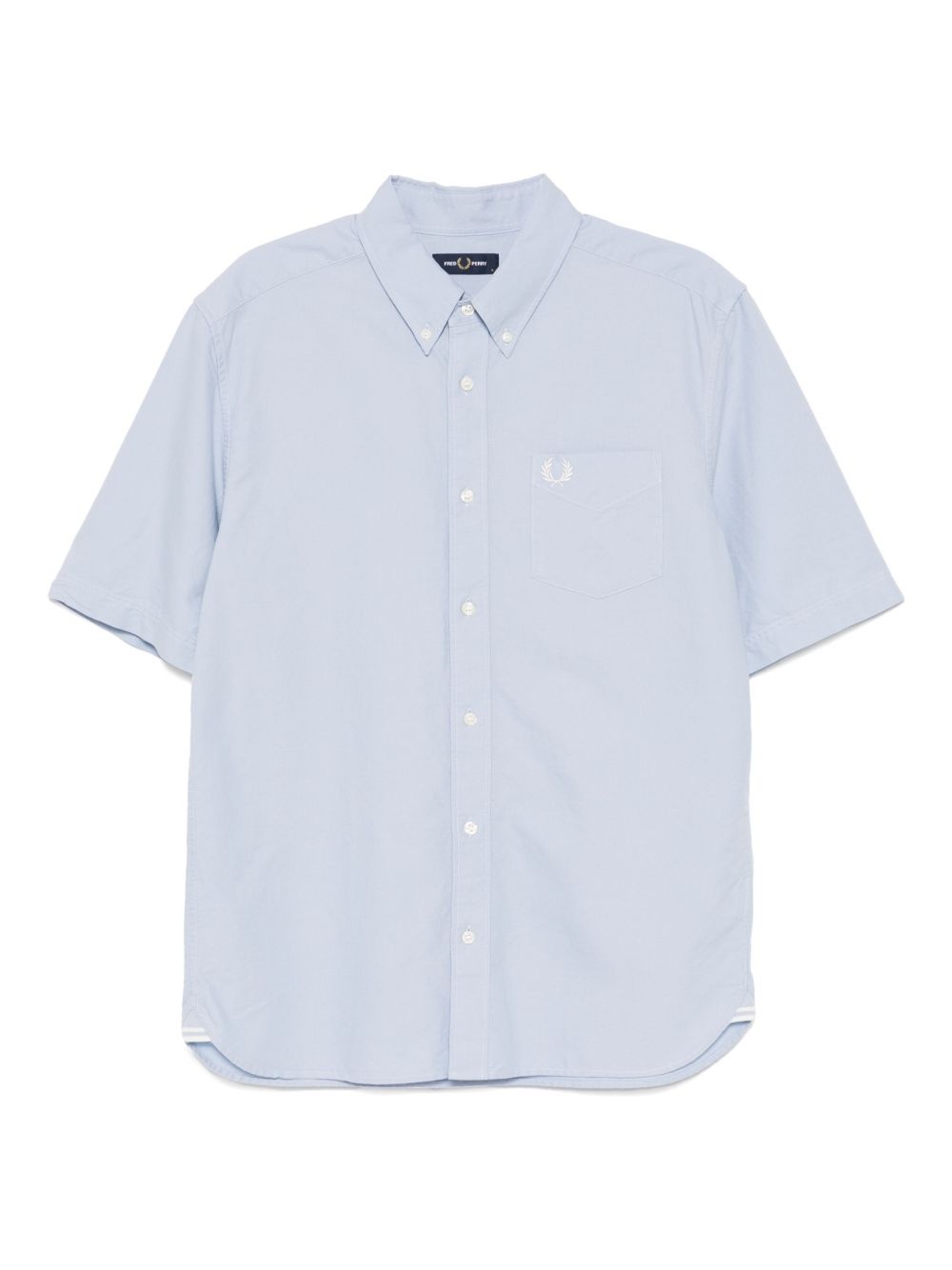 logo-embroidered shirt Highlights - Light blue - Front button fastening - Chest patch pocket - Curved hem Imported Composition Body: Cotton 100%
