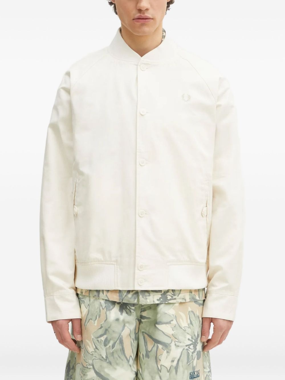 logo-embroidered shirt jacket Highlights - Off-white - Ribbed hem - Front button fastening - Laurel wreath embroidery - Raglan sleeves - Baseball collar Imported Composition Cotton 53%, Lyocell 47% Washing instructions Machine Wash