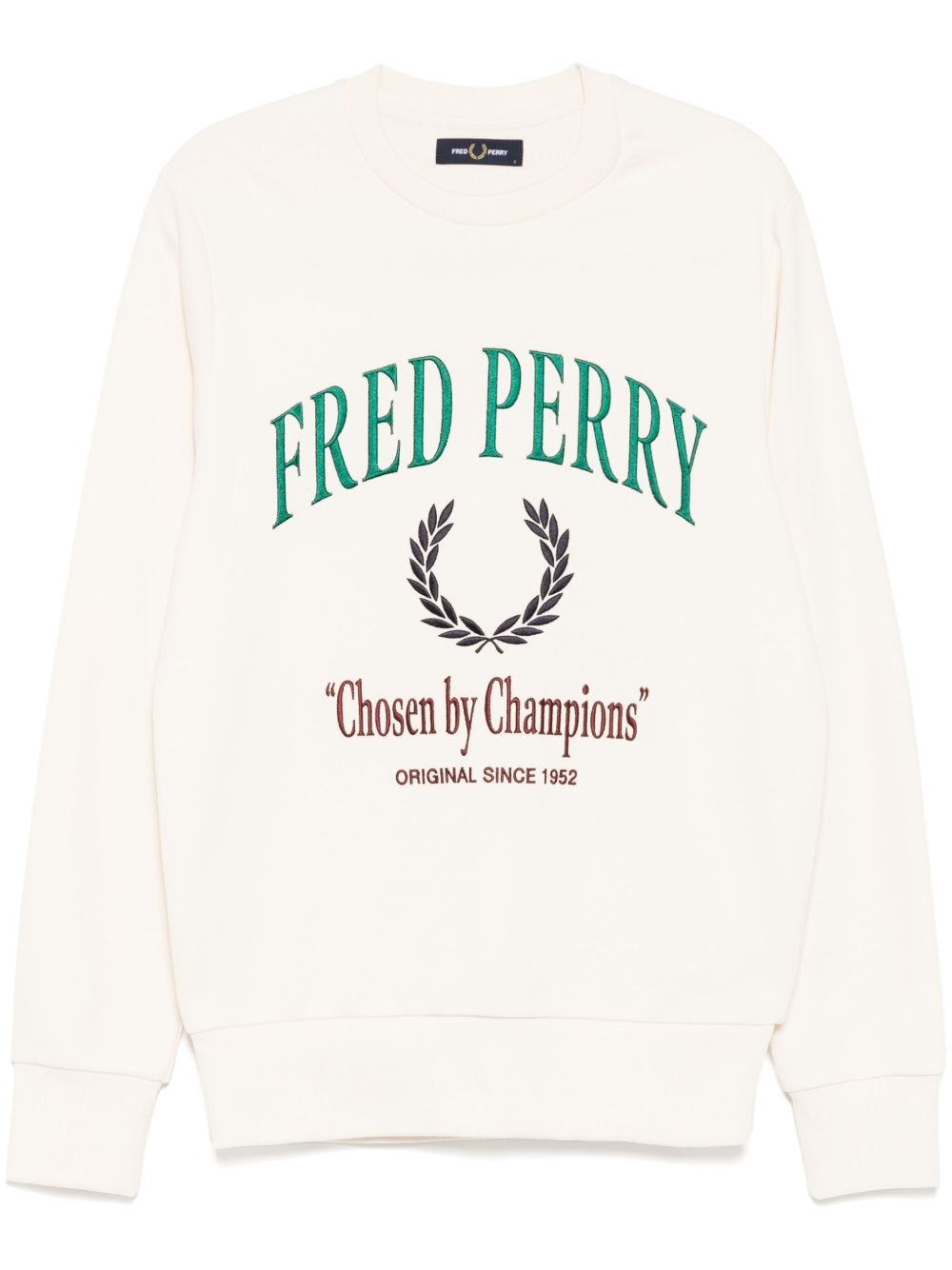 logo-embroidered sweatshirt Highlights - Cream white - Crew neck - Ribbed cuffs and hem - Jersey lining Imported Composition Cotton 100% Washing instructions Machine Wash