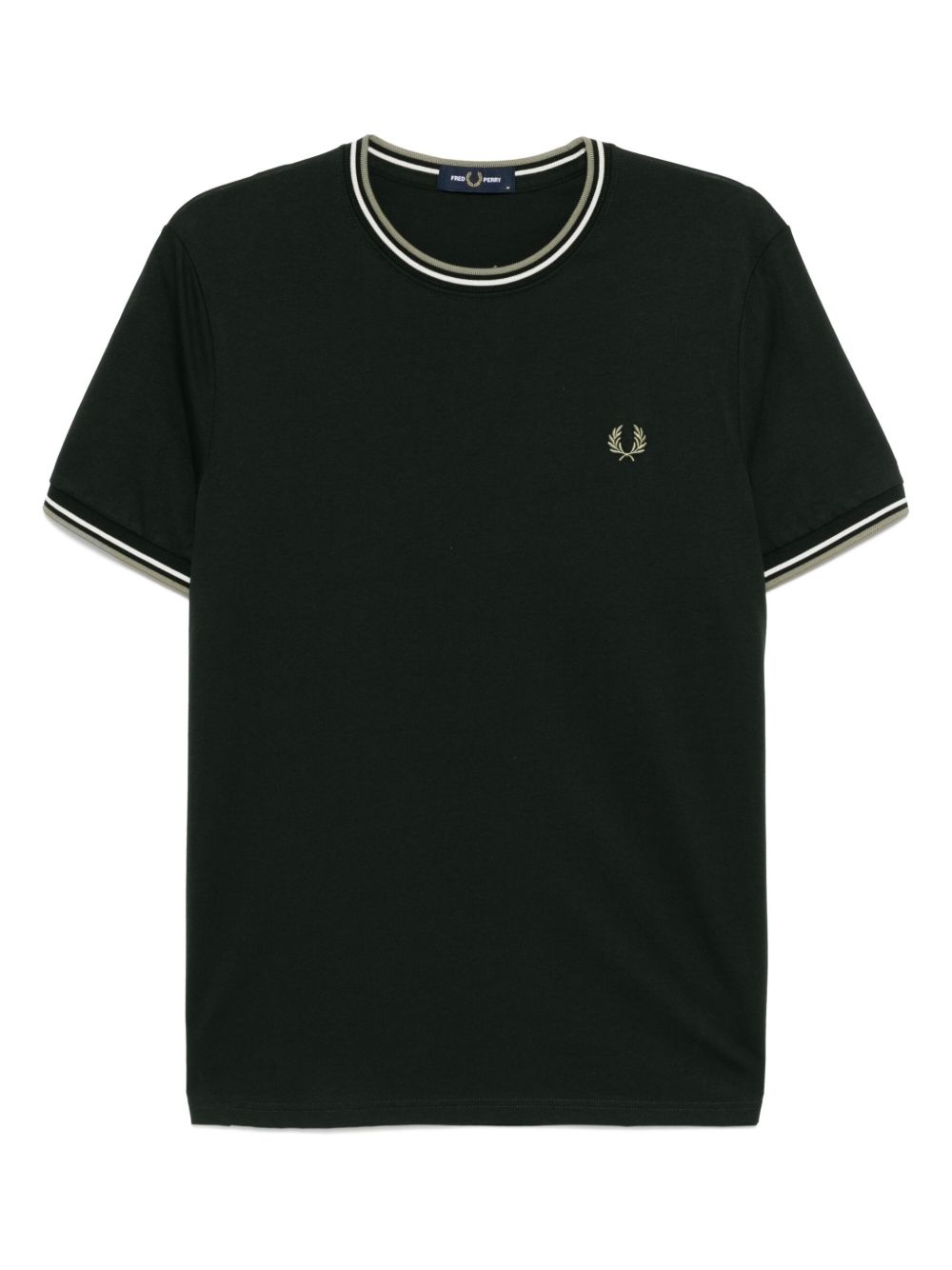 logo-embroidered T-shirt Highlights - Dark green - Crew neck - Straight hem - Stripe print Imported Composition Body: Cotton 100% Washing instructions Machine Wash