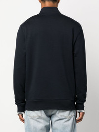 logo-embroidered zip-up sweatshirt Highlights - Blue - Cotton - Embroidered logo - Striped edge - Roll neck - Half front zip fastening - Long sleeves - Ribbed cuffs and hem Imported Composition Cotton 100% SIZE & FIT Model measurements Height 6 ft 2 in(1.88 m) Bust/Chest 36.61 in(93 cm) Hips 37.79 in(96 cm) Waist 28.74 in(73 cm) Measurement CHEST 39.37 in(100 cm) LENGTH 25.98 in(66 cm) SLEEVE LENGTH 25.19 in(64 cm) Shoulder Width 17.32 in(44 cm) FittingInformation Designed for a relaxed fit, this piece allows for comfort and movement when worn Made from a midweight non-stretch fabric, this piece offers minimal elasticity when worn This piece fits true to size – take your usual size Washing instructions Machine Wash