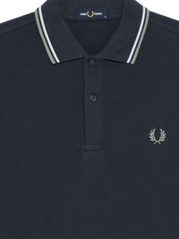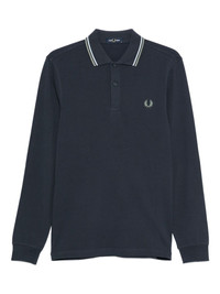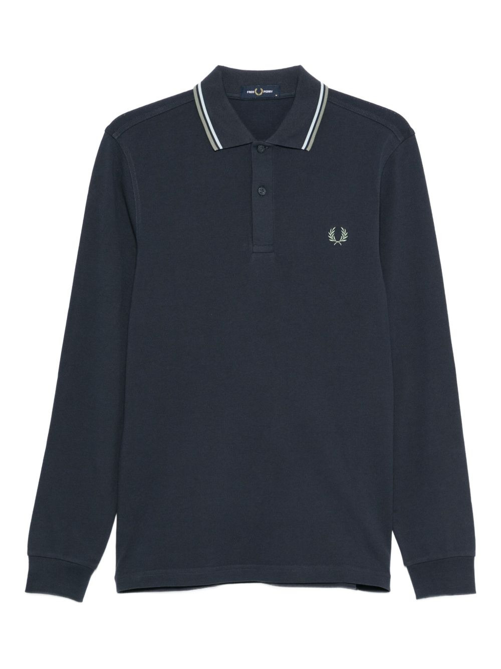 long-sleeve cotton polo shirt Highlights - Blue - Laurel wreath embroidery - Striped collar - Short front button fastening - Long sleeves - Straight hem Imported Composition Cotton 100% Washing instructions Read Manufacturer Guidelines