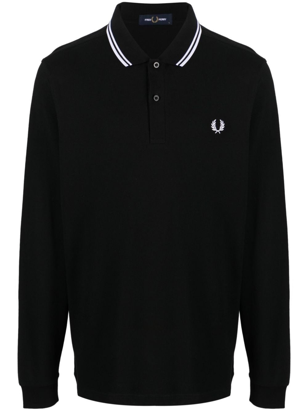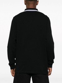 logo-embroidered cotton polo shirt Highlights - Black - Cotton - Striped border - Embroidered logo at the chest - Polo collar - Front button placket - Long sleeves - Ribbed cuffs - Straight hem Imported Composition Cotton 100% SIZE & FIT Model measurements Height 6 ft 2 in(1.88 m) Bust/Chest 35.03 in(89 cm) Hips 35.82 in(91 cm) Waist 27.95 in(71 cm) Measurement CHEST 38.58 in(98 cm) SLEEVE LENGTH 26.77 in(68 cm) Shoulder Width 16.53 in(42 cm) LENGTH 27.55 in(70 cm) FittingInformation Designed for a regular fit, this polo shirt offers a comfortable loose fit throughout the body Made from a midweight non-stretch fabric, this piece offers minimal elasticity when worn This piece fits true to size – take your usual size Washing instructions Machine Wash