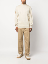mock-neck wool-blend jumper Highlights - Cream white - Wool blend - Intarsia-knit logo - Ribbed edge - Mock neck - Extra-long sleeves - Straight hem Imported Composition Wool 50%, Recycled Acrylic 25%, Acrylic 25% SIZE & FIT Model measurements Height 6 ft 2 in(1.88 m) Bust/Chest 36.61 in(93 cm) Hips 37.79 in(96 cm) Waist 28.74 in(73 cm) FittingInformation Designed for a relaxed fit, this piece allows for comfort and movement when worn The ribbed hem offers a close, comfortable fit Made with a midweight knit, this piece offers some stretch This piece fits true to size – take your usual size Washing instructions Machine Wash