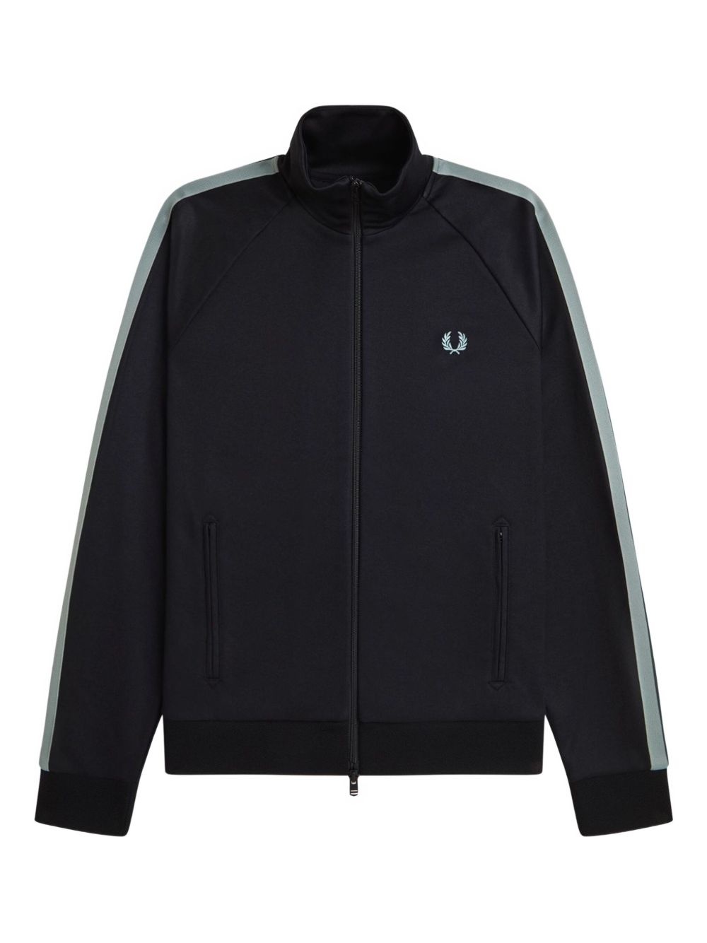 raglan-sleeve track jacket Highlights - Black - Side stripe detailing - High neck - Front zip fastening - Two front pockets Imported Composition Recycled Polyester 54%, Cotton 46% Washing instructions Machine Wash