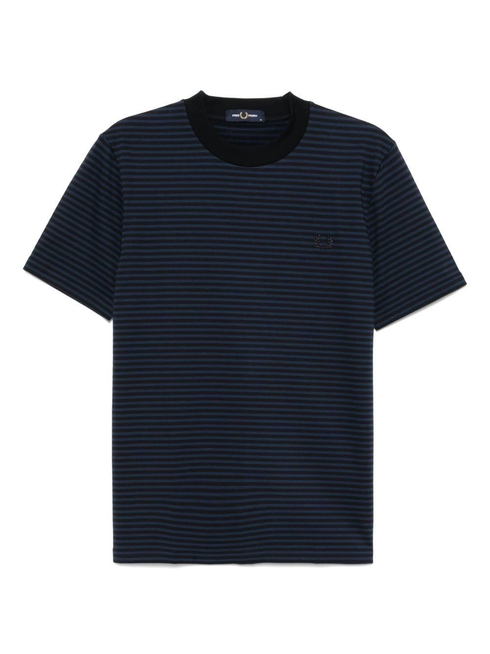 striped T-shirt Highlights - Navy blue - Crew neck - Short sleeves Imported Composition Cotton 100% SIZE & FIT FittingInformation Designed for a regular fit allowing for a comfortably loose fit throughout the body Made from a midweight non-stretch fabric, this piece offers minimal elasticity when worn