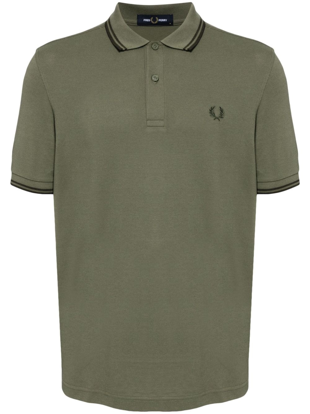 twin tipped polo shirt Highlights - Olive green - Cotton - Pique weave - Embroidered logo at the chest - Striped tipping - Polo collar - Front button placket - Short sleeves - Ribbed cuffs - Regular fit Imported Composition Cotton 100% SIZE & FIT Model measurements Height 6 ft 2 in(1.89 m) Bust/Chest 35.03 in(89 cm) Hips 34.64 in(88 cm) Waist 28.34 in(72 cm) FittingInformation Designed for a regular fit, this polo shirt offers a comfortable loose fit throughout the body Made from a midweight non-stretch fabric, this piece offers minimal elasticity when worn