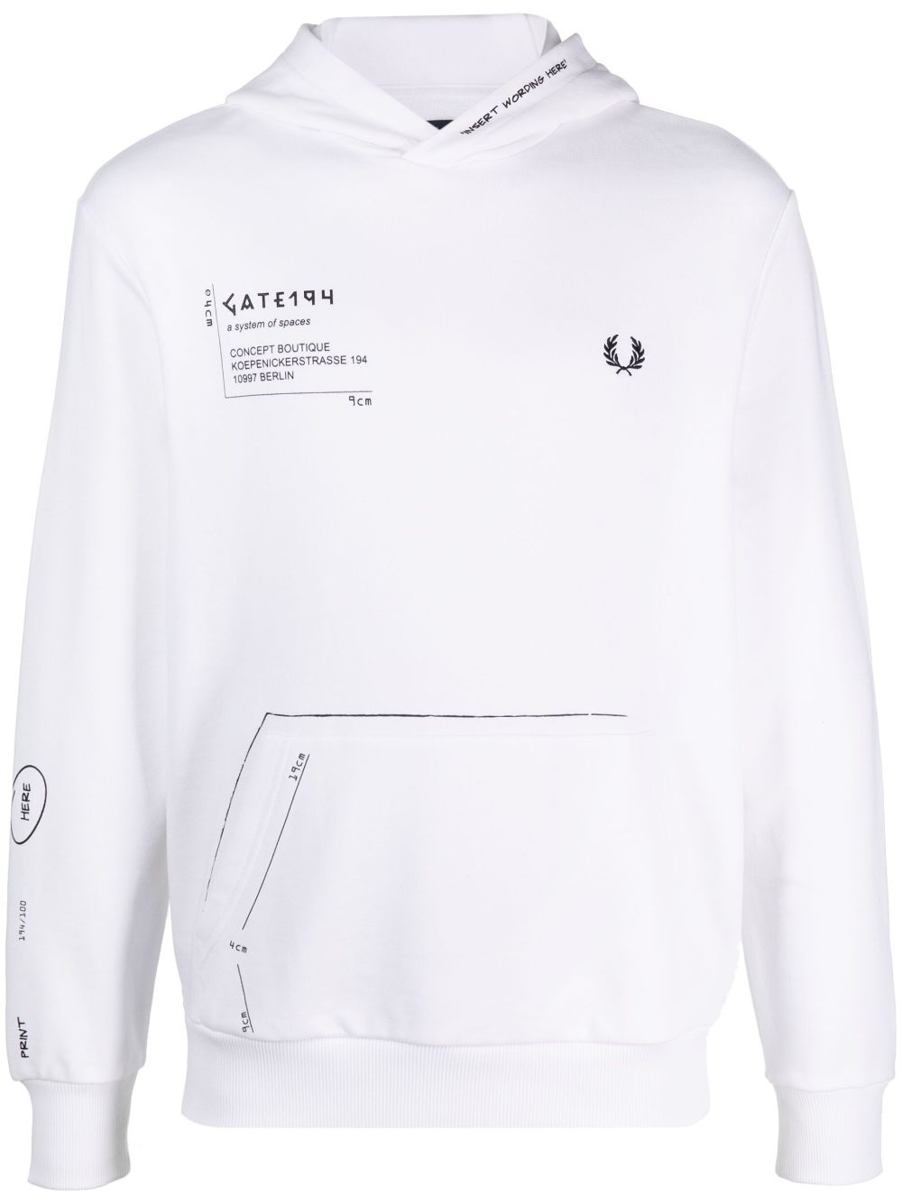 x GATE194 signature-print hoodie Highlights - White - Cotton - All-over graphic print - Logo print at the chest - Classic hood - Front pouch pocket - Long sleeves - Ribbed cuffs and hem Imported Composition Cotton 100% SIZE & FIT Model measurements Height 6 ft 1 in(1.85 m) Bust/Chest 38.58 in(98 cm) Hips 37 in(94 cm) Waist 30.31 in(77 cm) FittingInformation Designed for a relaxed fit, this piece allows for comfort and movement when worn Made from a midweight non-stretch fabric, this piece offers minimal elasticity when worn This piece fits true to size – take your usual size