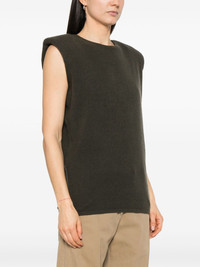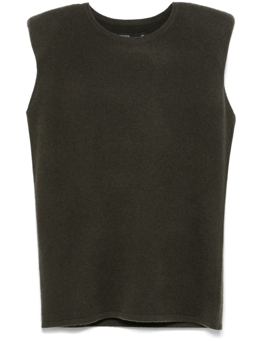 cashmere vest Highlights - Olive green - Crew neck - Shoulder pads - Sleeveless - Ribbed hem Imported Composition Cashmere 100% SIZE & FIT Model measurements Height 5 ft 11 in(1.8 m) Bust/Chest 33.07 in(84 cm) Hips 37.4 in(95 cm) Waist 25.19 in(64 cm) FittingInformation Designed for a relaxed fit, this piece allows for comfort and movement when worn The internal shoulder pads offer a structured shape Made with a midweight knit, this piece offers some stretch