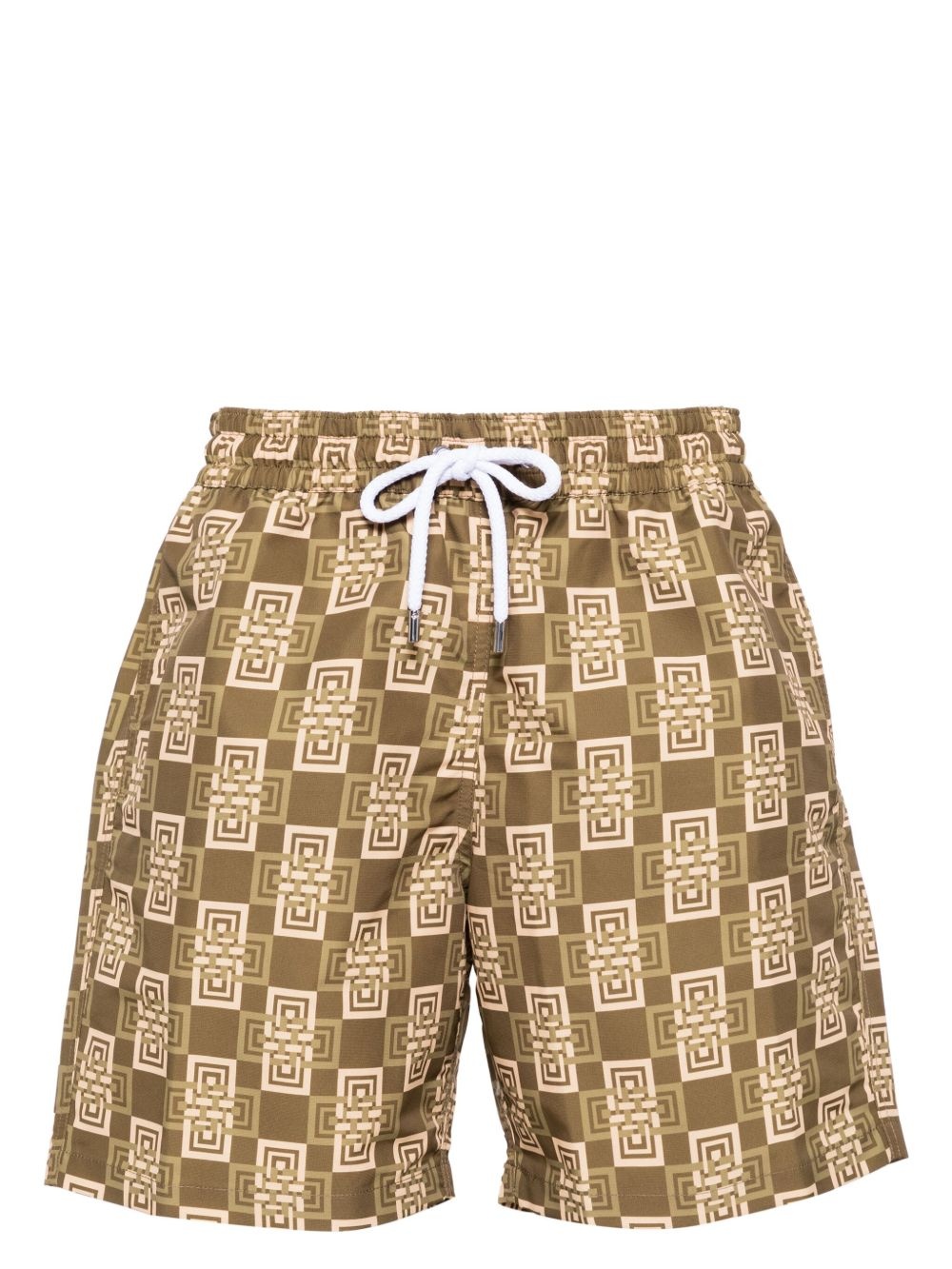 board swim shorts Highlights - Spinach/apricot - Recycled polyester - Geometric print - Drawstring fastening waist - Slip pockets to the sides - Rear welt pocket - Mesh lining - Be mindful to try on swimwear over your own garments. - This piece comes complete with a protective dust bag. Imported Composition Outer: Recycled Polyester 100% Lining: Recycled Polyester 100%