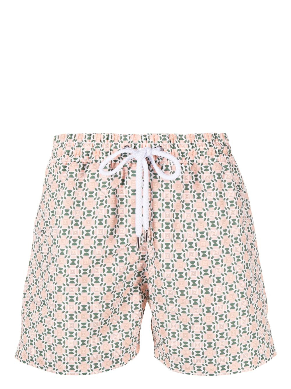 geometric-print swim shorts Highlights - Light orange/green/white - Recycled polyester - Geometric print - Elasticated drawstring waistband - Rear welt pocket - Full lining - Be mindful to try on swimwear over your own garments. Imported Composition Outer: Recycled Polyester 100% Lining: Cotton 100%