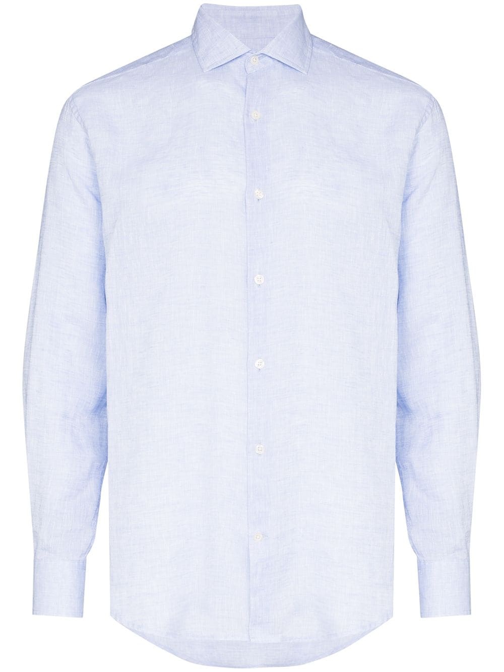 linen shirt Highlights - This blue frescobol carioca antonio linen shirt is cut for a relaxed fit. it features a point collar, long sleeves, a button-up front and cuffs and a curved hem. picture this. you, in the height of summer wearing this frescobol carioca shirt and sipping on a warm beer. - Ahh, - the good life. Imported Composition Linen/Flax 100% SIZE & FIT Model measurements Height 6 ft 2 in(1.89 m) Bust/Chest 36.22 in(92 cm) Hips 35.82 in(91 cm) Waist 28.74 in(73 cm) FittingInformation This piece fits true to size. We recommend you get your regular size Classic fit Made with a mid-weight non-stretch fabric Measurement CHEST 41.33 in(105 cm) Washing instructions Hand Wash