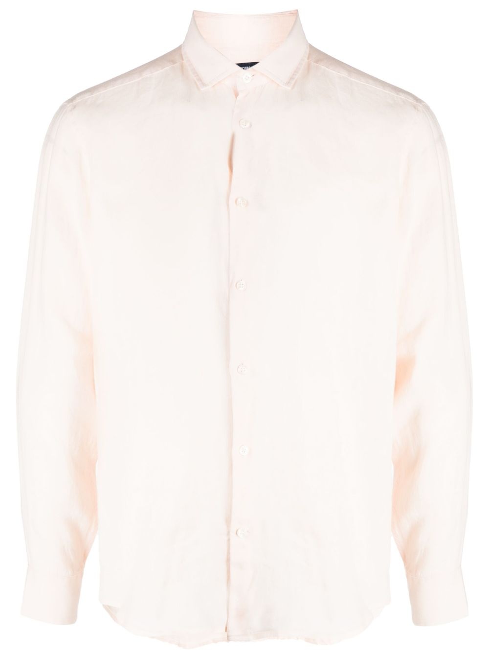 long-sleeved linen shirt Highlights - Blush pink - Linen/flax - Classic collar - Front button fastening - Long sleeves - Buttoned-cuff sleeves - Curved hem Made in United Kingdom Composition Linen/Flax 100% SIZE & FIT Model measurements Height 6 ft 2 in(1.87 m) Bust/Chest 34.25 in(87 cm) Hips 36.22 in(92 cm) Waist 29.52 in(75 cm) FittingInformation Designed for a regular fit, allowing for a comfortably loose fit throughout the body Made from a lightweight non-stretch fabric This piece fits true to size – take your usual size