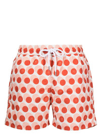 polka-dot swim shorts Highlights - Beige/orange - Recycled polyester - Polka dot print - Thigh-length - Elasticated drawstring waistband - Two side inset pockets - Rear welt pocket - Be mindful to try on swimwear over your own garments. Imported Composition Recycled Polyester 100%