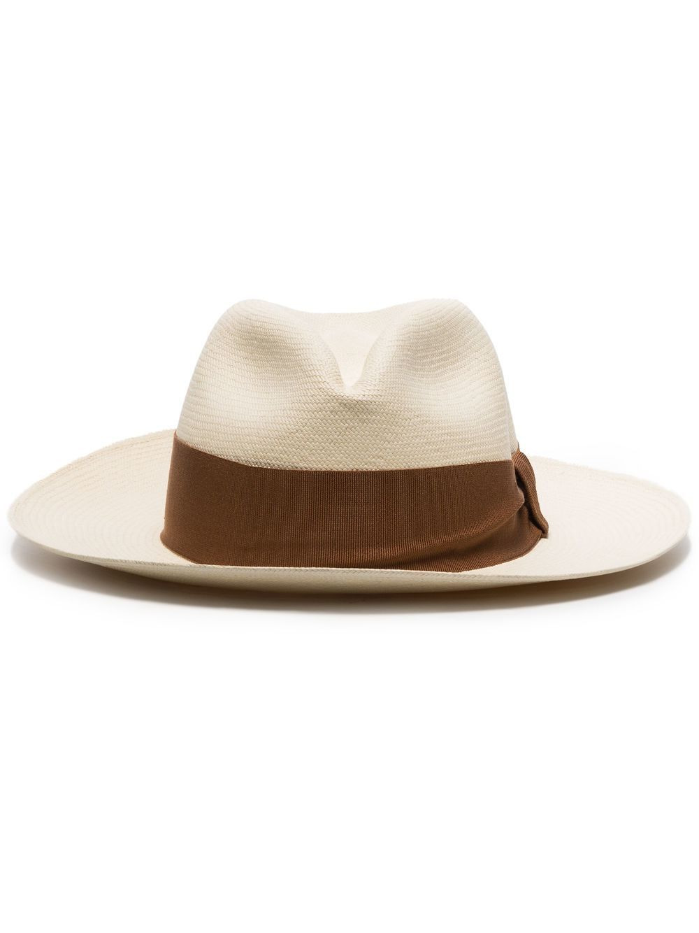Rafael ribbon-detail fedora terra cotta cream interwoven design ribbon detail at the crown dropped wide brim Imported Composition Fabric 100% SIZE & FIT Model measurements Height 6 ft 1 in(1.85 m) Bust/Chest 34.25 in(87 cm) Hips 33.85 in(86 cm) Waist 25.98 in(66 cm) Measurement BRIM 2.87 in(7.3 cm) CIRCUMFERENCE 23.22 in(59 cm) Washing instructions Do Not Wash/Do Not Dry Clean