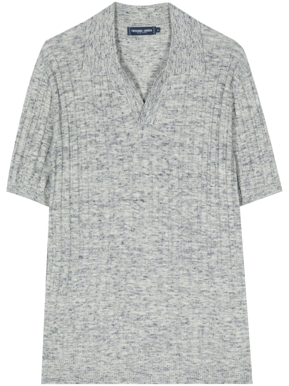 Rino space-dye knitted polo short Highlights - Blue-grey - Cotton-linen blend - Melange effect - Ribbed knit - Polo collar - Short buttonless placket - Short sleeves - Straight hem Imported Composition Cotton 54%, Acrylic 32%, Linen/Flax 14%