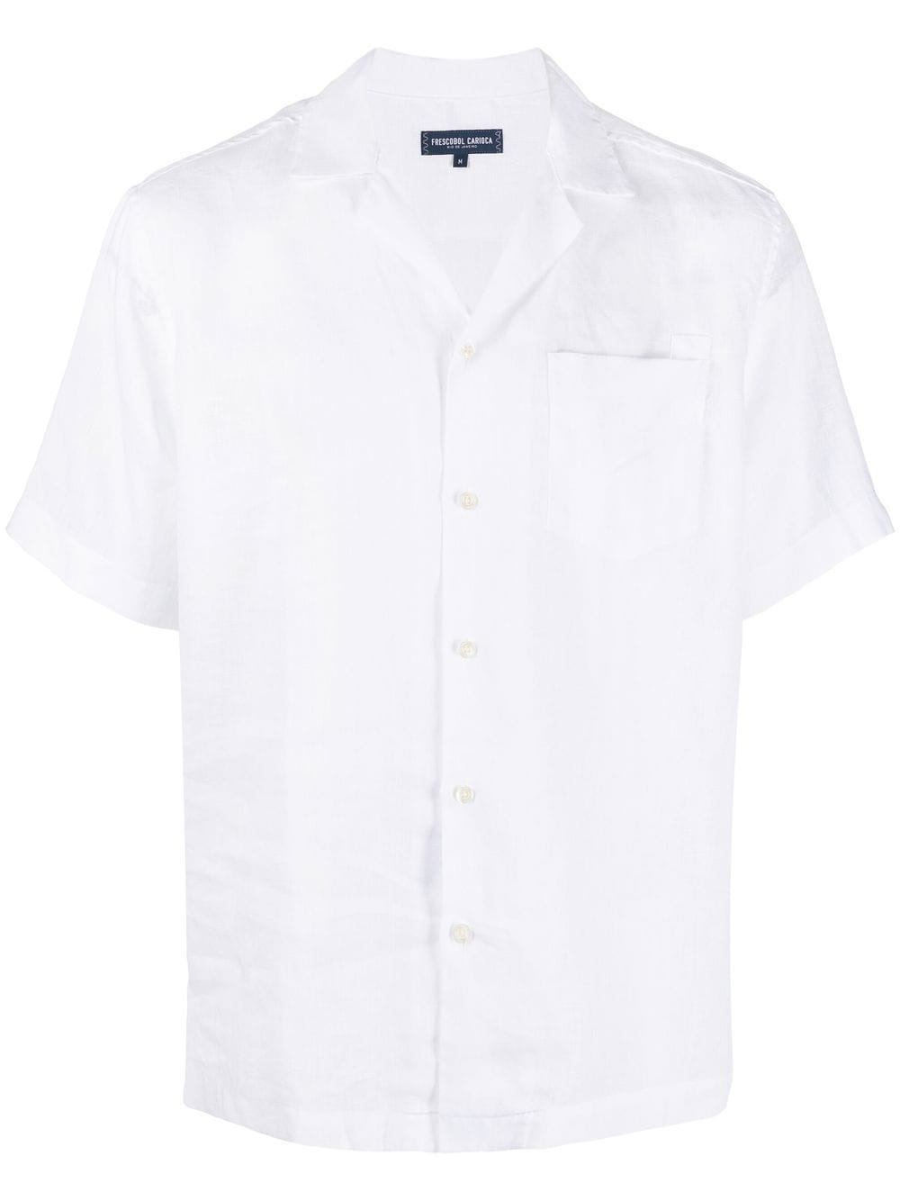 short-sleeve linen shirt Highlights - White - Linen - Classic collar - Front button fastening - Chest patch pocket - Short sleeves - Straight hem Imported Composition Linen/Flax 100% SIZE & FIT Model measurements Height 6 ft 2 in(1.87 m) Bust/Chest 36.41 in(92.5 cm) Hips 37 in(94 cm) Waist 29.52 in(75 cm) FittingInformation This piece fits true to size. We recommend you get your regular size Cut for a loose fit Made with a mid-weight non-stretch fabric Washing instructions Machine Wash