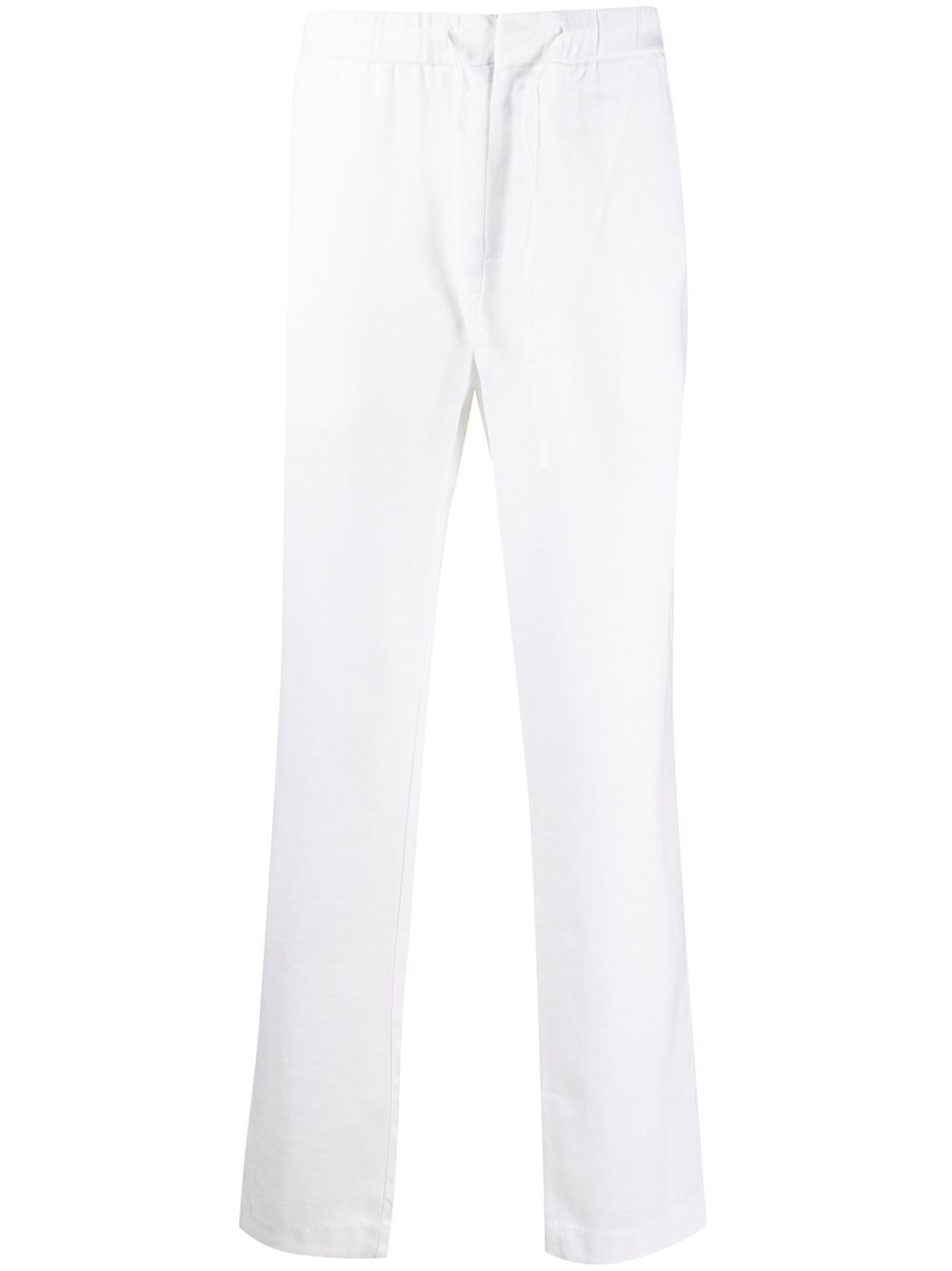 straight leg drawstring waist trousers Highlights - White - Linen blend - Two side slit pockets - Rear slit pocket - . Imported Composition Linen/Flax 54%, Cotton 46% SIZE & FIT Model measurements Height 6 ft 2 in(1.87 m) Bust/Chest 37.79 in(96 cm) Hips 37.79 in(96 cm) Waist 30.31 in(77 cm) Measurement FRONT RISE 12.4 in(31.5 cm) INSIDE LEG 29.52 in(75 cm) HIPS 45.27 in(115 cm) WAIST 33.46 in(85 cm) FittingInformation This piece fits true to size. We recommend you get your regular size Designed for a slim fit at the waist and loose over the leg Made with a mid-weight non-stretch fabric Washing instructions Machine Wash