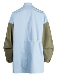 two-tone drawstring-waist shirt Highlights - Light blue/khaki - Cotton blend - Contrasting panel detail - Patch detail - Two-tone design - Straight-point collar - Front button placket - Drawstring waist - Long sleeves - Buttoned cuffs - Two front flap pockets - Straight hem Imported Composition Body: Cotton 65%, Polyester 35% Washing instructions Machine Wash