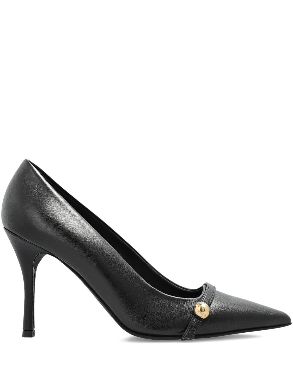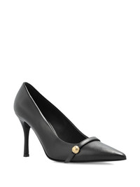 100mm leather heeled pumps Highlights - Black - Pointed toe - Leather upper - Gold-tone embellishment Made in Italy Composition Outer: Calf Leather 100% Lining: Calf Leather 100% Sole: Rubber 100% SIZE & FIT Measurement HEEL 3.93 in(10 cm)