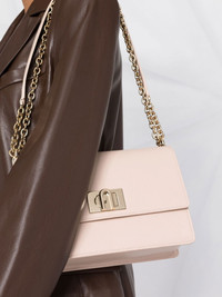 1927 shoulder bag Showcasing Furla's fresh take on Italian craftmanship, the 1927 shoulder bag is crafted in powder-pink leather and enhanced with a chunky chain-link shoulder strap. Highlights - 1927 crossbody bag from furla featuring powder pink, leather, gold-tone hardware, twist-lock fastening, chain-link shoulder strap, foldover top and internal zip-fastening pocket. Imported Composition Outer: Leather 100% SIZE & FIT Model measurements Height 5 ft 10 in(1.78 m) Bust/Chest 30.7 in(78 cm) Hips 35.03 in(89 cm) Waist 23.62 in(60 cm) Measurement DEPTH 2.95 in(7.5 cm) HANDLE 11.81 in(30 cm) HEIGHT 5.9 in(15 cm) STRAP 21.65 in(55 cm) WIDTH 9.44 in(24 cm)