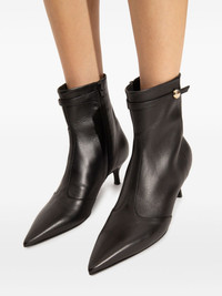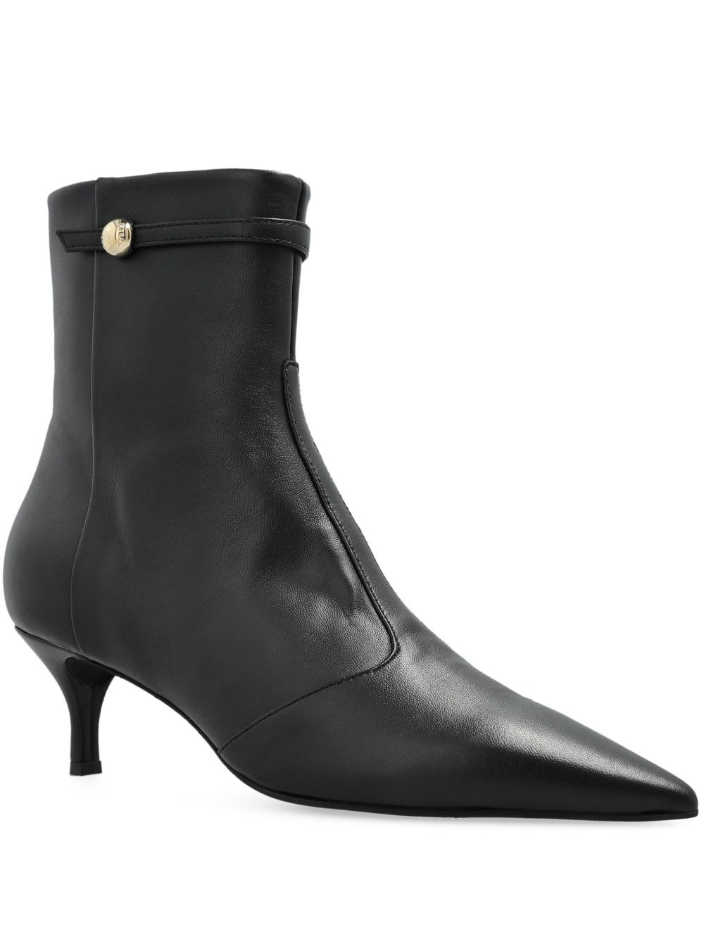 60mm pointed-toe ankle boots Highlights - Black - Leather - Pointed toe - Kitten heel - Zip fastening - Button detail Made in Italy Composition Lining: Leather 100% Sole: Rubber 100% Outer: Leather 100% SIZE & FIT Measurement HEEL 2.36 in(6 cm)