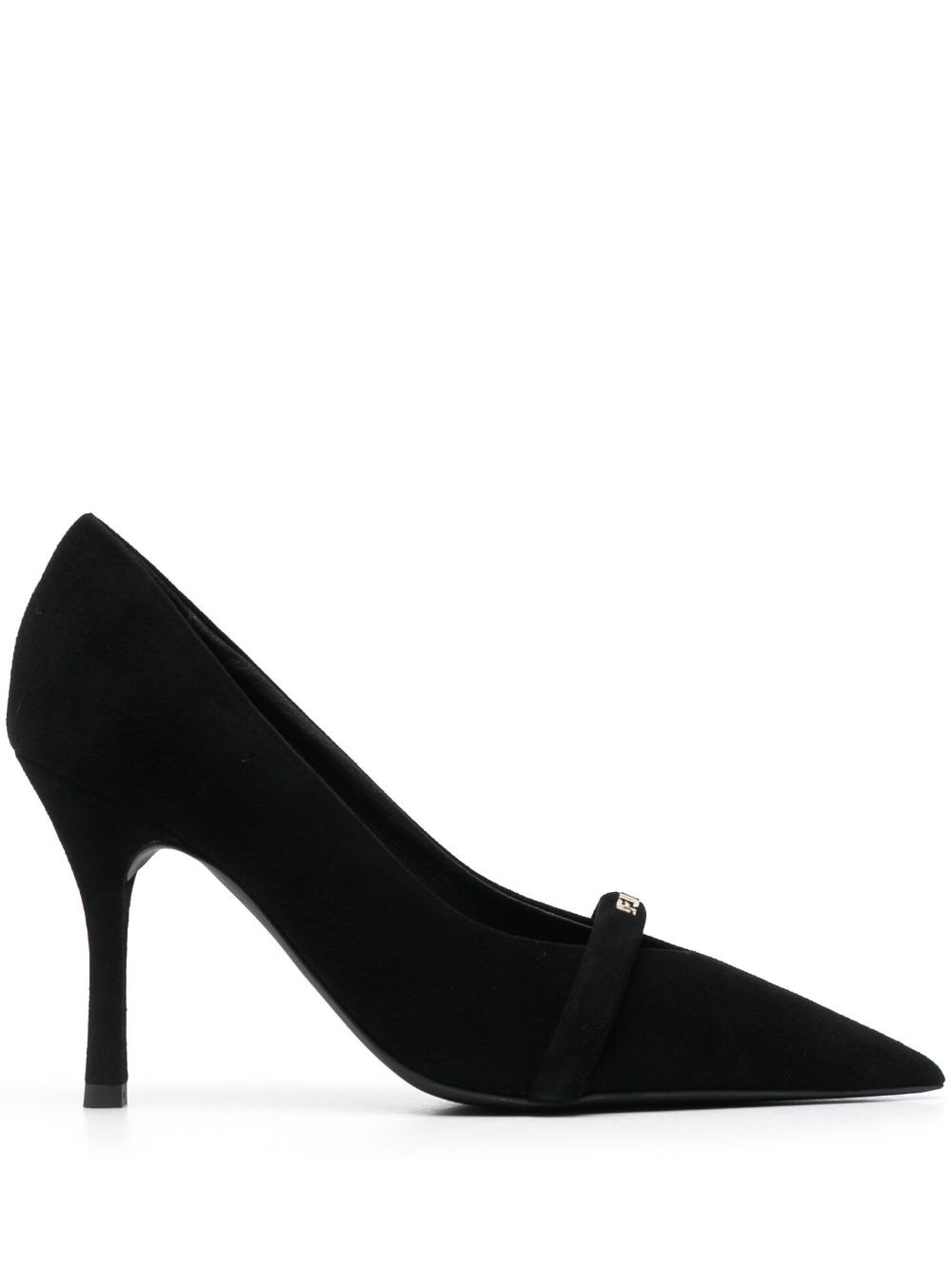 80mm logo-plaque leather pumps Highlights - Black - Sheepskin - Logo plaque - Gold-tone hardware - Pointed toe - Branded insole - Slip-on style - 80mm high heel Made in Italy Composition Leather 100% SIZE & FIT Measurement HEEL 3.14 in(8 cm)
