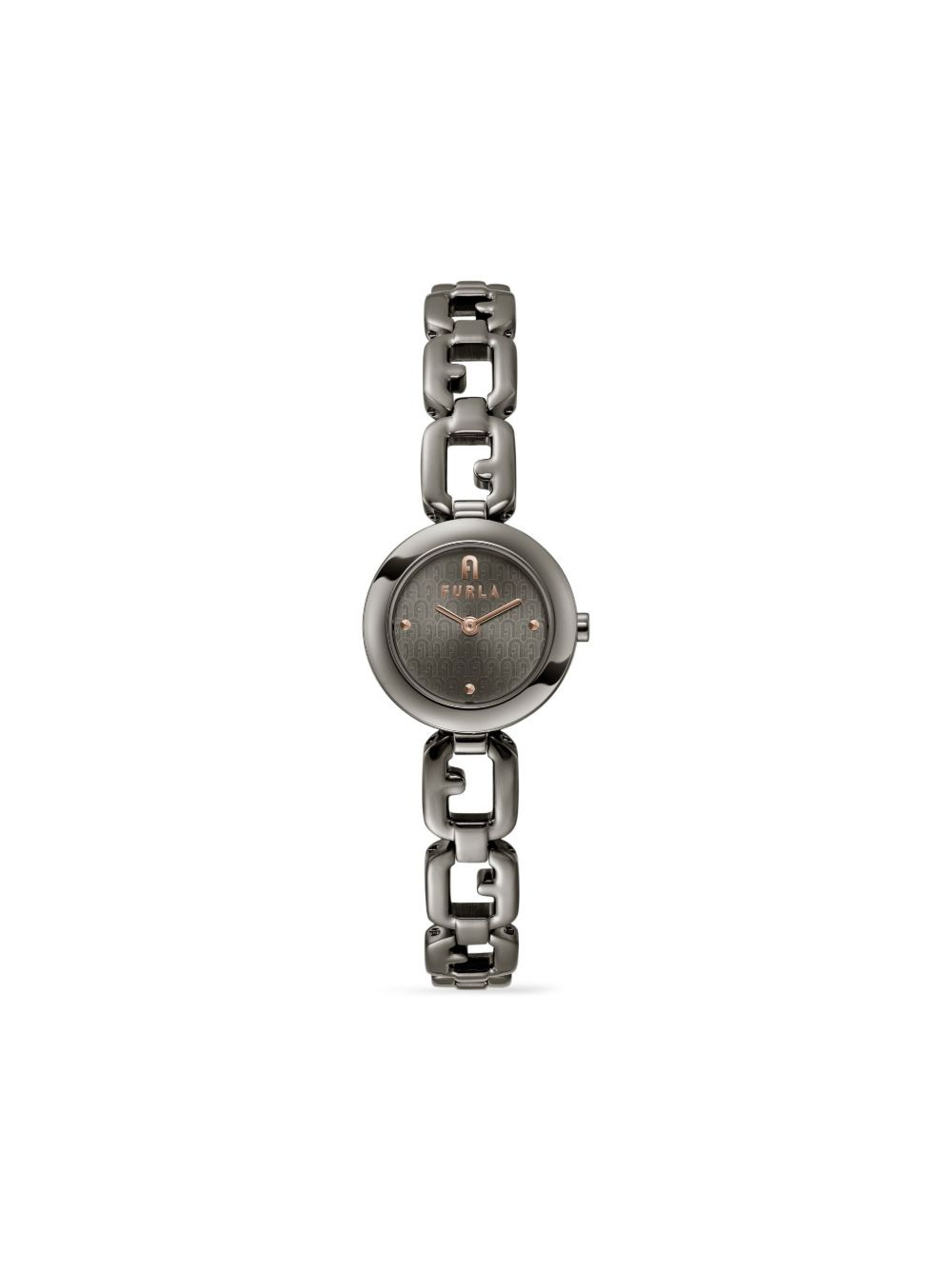 Analog Arco Chain 25mm Highlights - Dark grey dial - Gunmetal grey colour - Round case shape - 25mm case size - Rose gold coloured features on dial - Gunmetal bezel - Quartz movement - Concealed crown - This item comes with a standard one-year warranty from the boutique. Imported SIZE & FIT Measurement DIAMETER 0.98 in(2.5 cm)