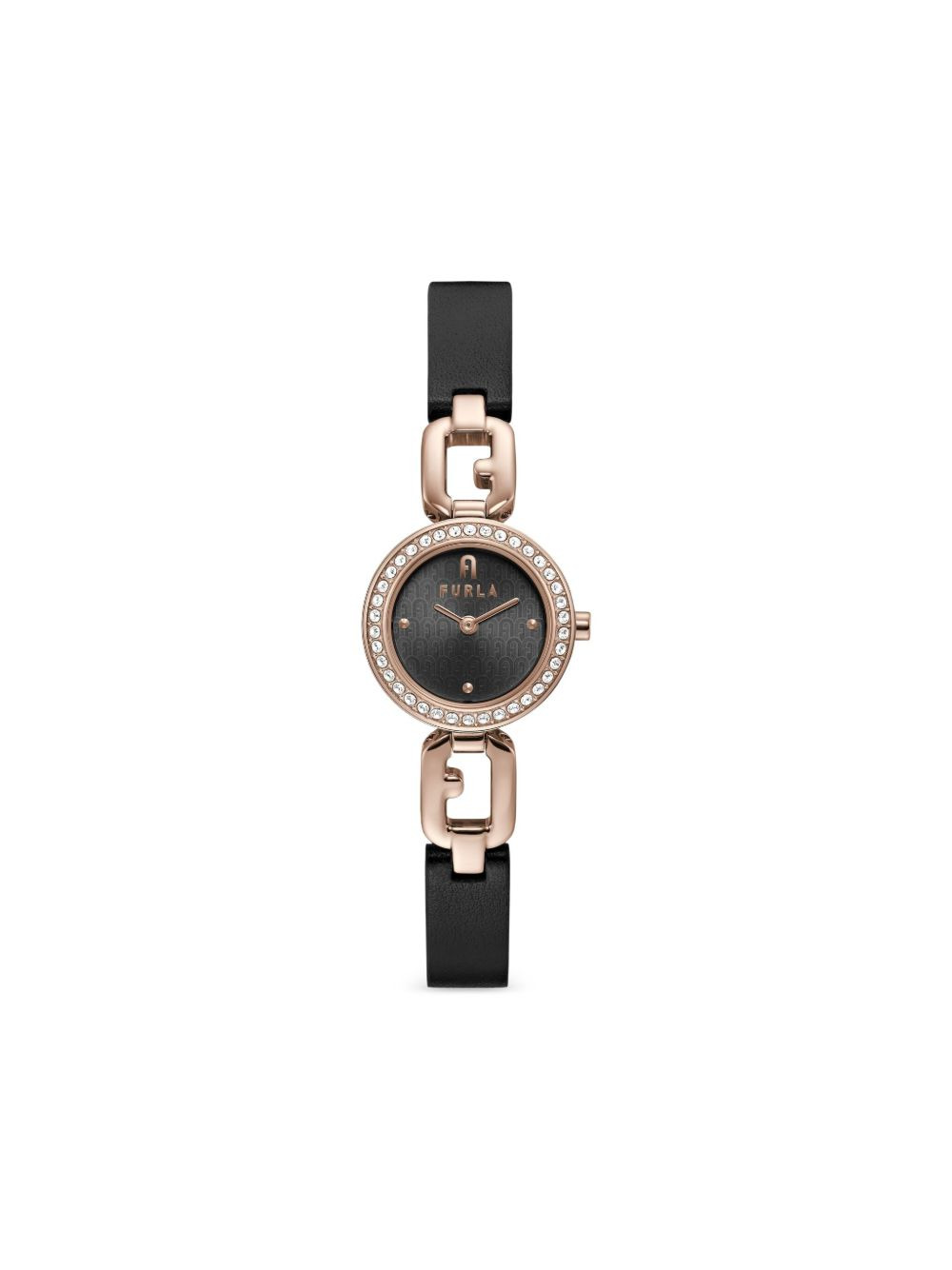 Arco Chain 25mm Highlights - Black dial - Round case shape - 25mm case size - Crystal bezel - Quartz movement - Rose gold-tone crown - Black leather strap - Logo dial - This item comes with a standard one-year warranty from the boutique. Imported SIZE & FIT Measurement DIAMETER 0.98 in(2.5 cm)