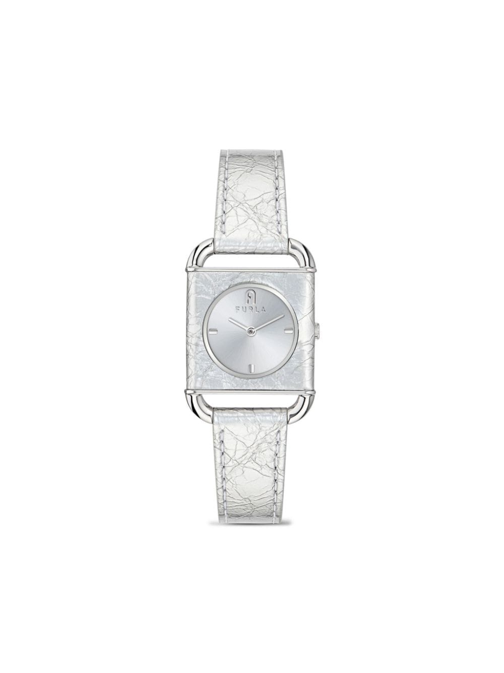 Arco Square 28mm Highlights - Silver-tone - Stainless steel case - Leather strap - Cracked effect - Buckle fastening - Geometric dial - Baton hands - Round face Imported